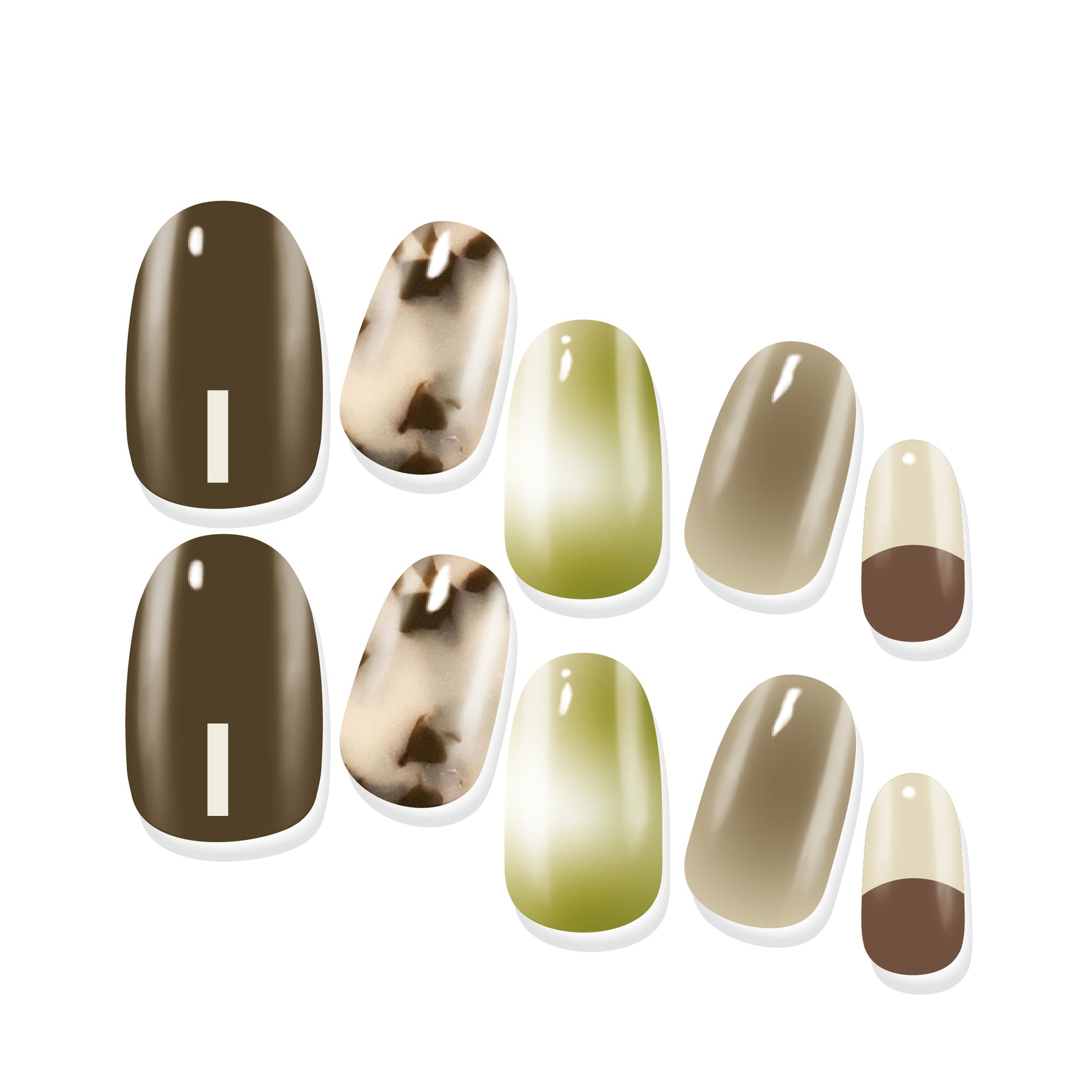 Mocha Tortoise features bold espresso tones, blonde tortoise accents, and sheer matcha-green gradients. For when you can’t pick between espresso or matcha—why not get both?